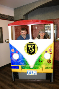 Saturday morning found us in Vic High Auditorium where the grads ‒ along with former teachers Tommy Mayne, Reg Reid and Colin Glover ‒ were entertained by the Calamity Players presentation of a musical skit written by Russ Leech entitled “A Day in the Life of Vic High.” The words of the 13 songs were rewritten to be relevant to the theme and were backed by a three-piece band featuring the talents of Rick Acres, Frank Kiefer and John Polkinghorne (a guest from Esquimalt High). The performances of John Roberts, Heather McFarlane, Ken Hicks, Judy Gill, John Britt, Kathy Hatch, Russ Leech and Jo Humber, and guest Rino Elverhoy, were well received and enjoyed by all. The highlight came when the fog machine overreacted and filled the stage and auditorium with a thick cloud. Nonetheless, the cast carried on in the true tradition of the theatre!